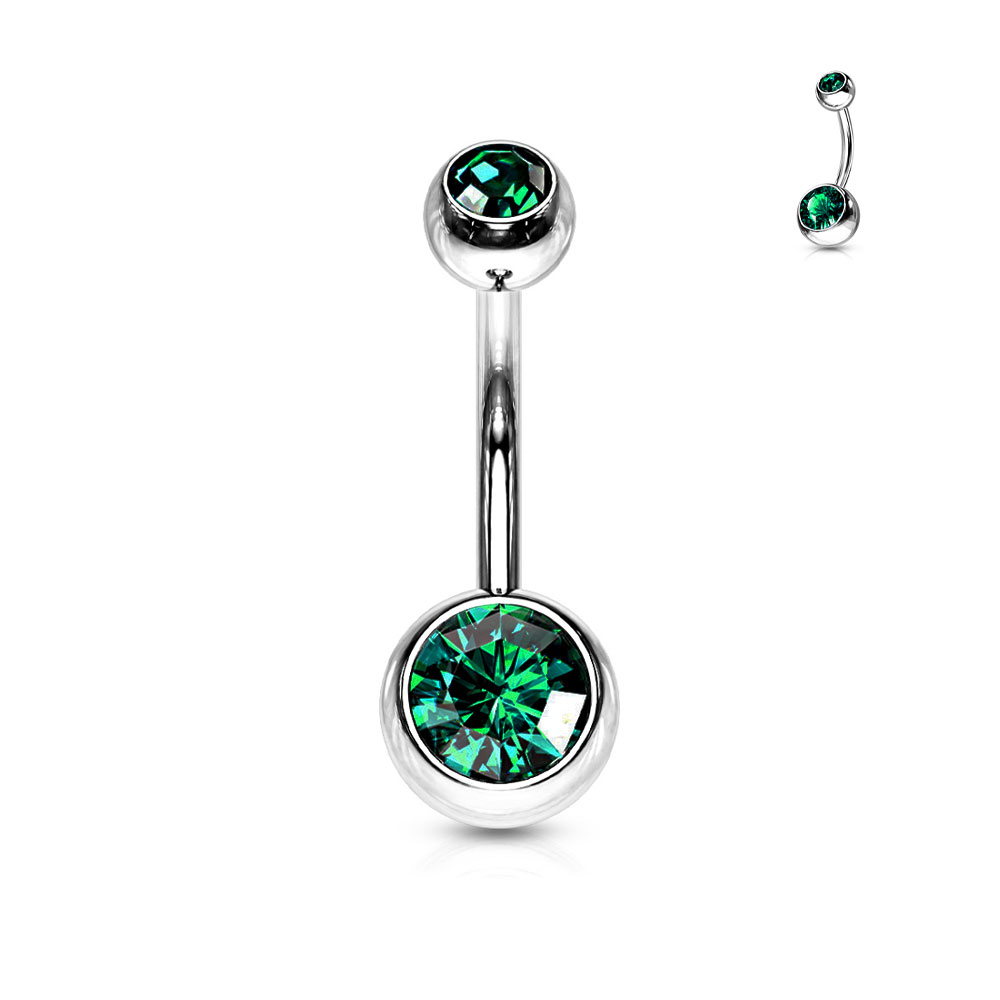 (10mm) Barbell Acier Chirurgical 316L Piercing au Nombril avec Fermeture Filetée Boules en Strass - Argent / Vert Foncé