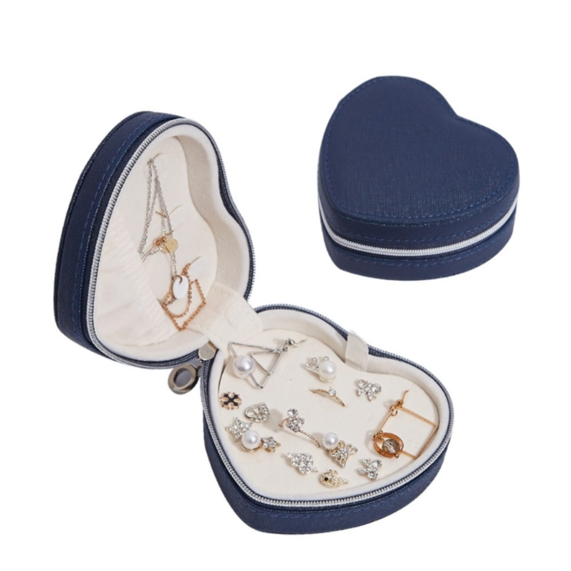 (10x10x5cm) Boîte à bijoux en cuir avec design Coeur Organiseur pour bagues / boucles d'oreilles - bleu foncé