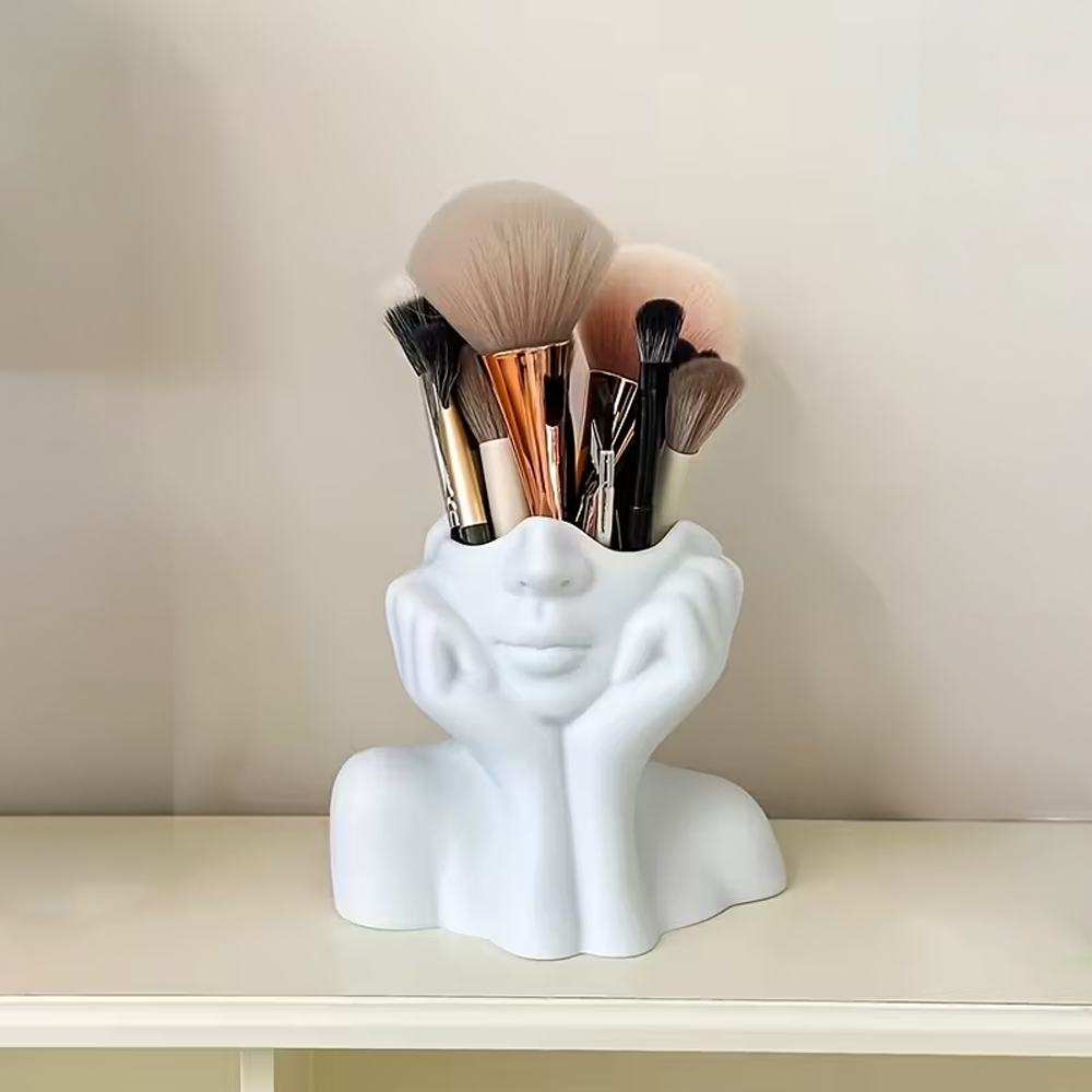 Cet organisateur en forme de sculpture de visage n'est pas seulement un rangement pratique, mais aussi un véritable accroche-regard sur ta che de maquillage. La forme élégante de support de pinceaux permet de ranger plusieurs pinceaux de maquillage et de les garder toujours bien ordonnés et à portée de main. Le design sobre s'adapte parfaitement à chaque maison et s'intègre harmonieusement dans ton intérieur.