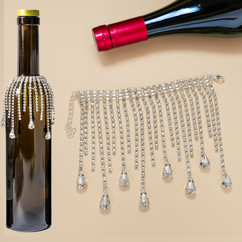Avec cette élégante bouteille de vin chaîne, tu donnes à chaque bouteille un look festif en un tour de main. Que ce soit sur la table dressée, au buffet ou comme petit point fort lors d'occasions particulières, la déco scintillante apporte une touche d'élégance et attire à coup sûr tous les regards.