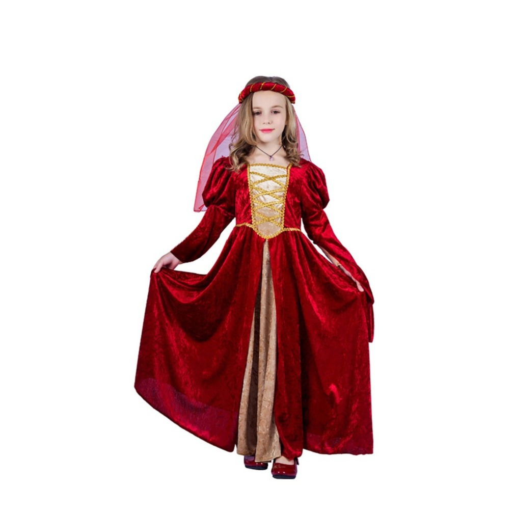 (120-125cm) Carnaval Enfants Costume Médiéval Renaissance Princesse Déguisement pour les soirées à thème / Halloween y compris la couronne de voile - Rouge