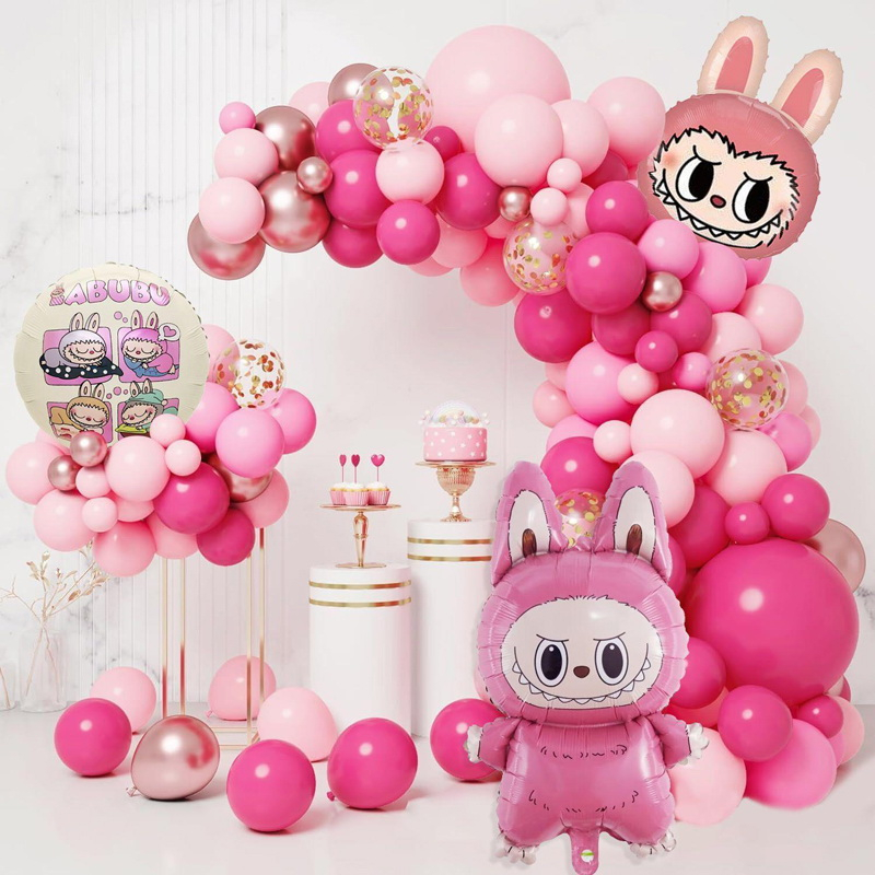 (124-pièces set) PARTY Films Ballon Latex Décoration Anniversaire Monstres-lapins - Rose / Rose / Rouge