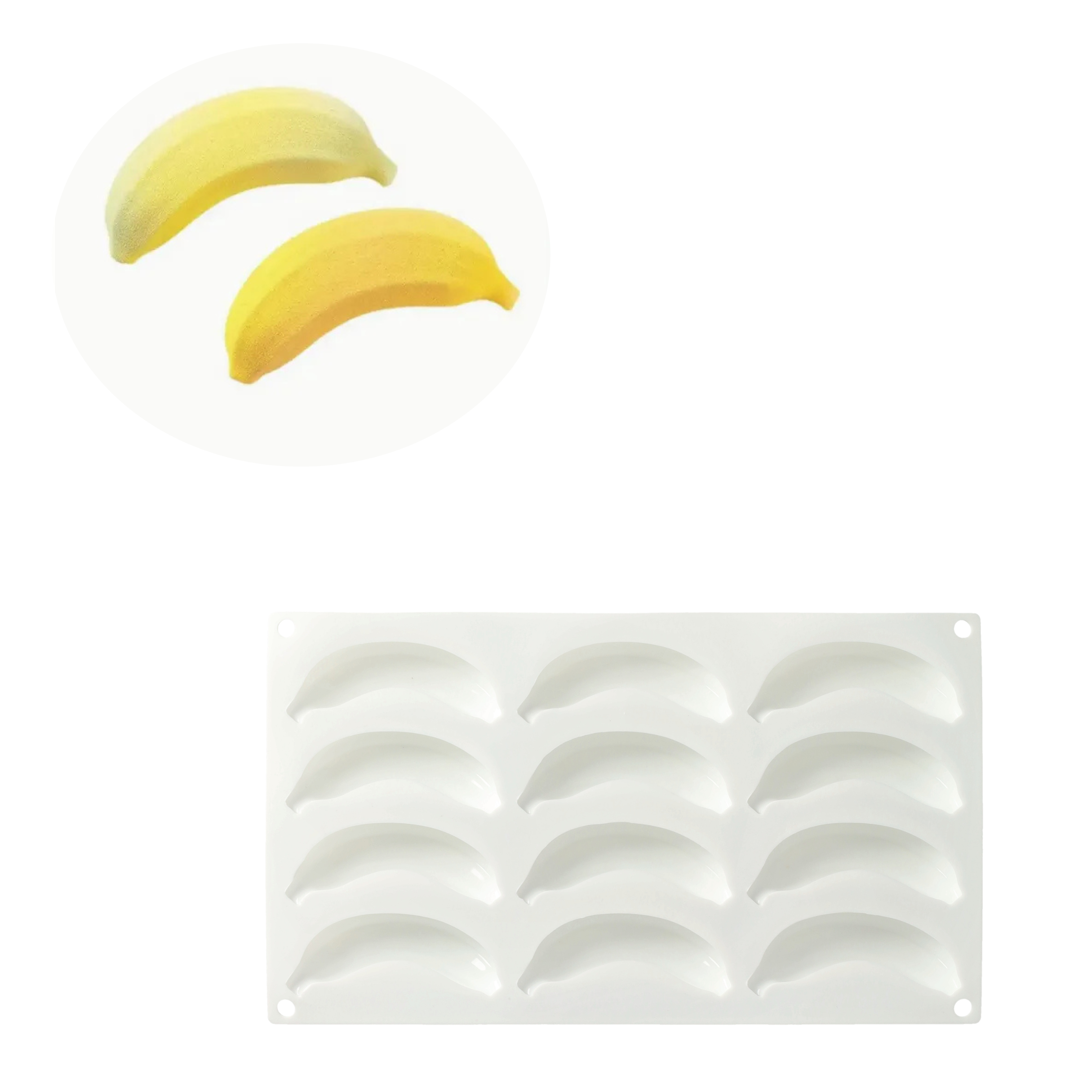 (12x) Silicone Tendance Fruits Moule à gâteaux DIY Moule pour desserts aux fruits viraux - Banane
