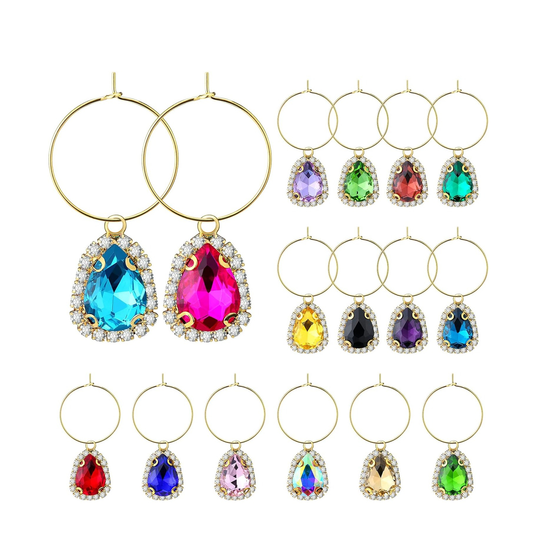 (14 pièces) Marqueurs en verre Verre à boire réutilisable Charms en cristal Pendentif marqueur avec sac de rangement - Coloré