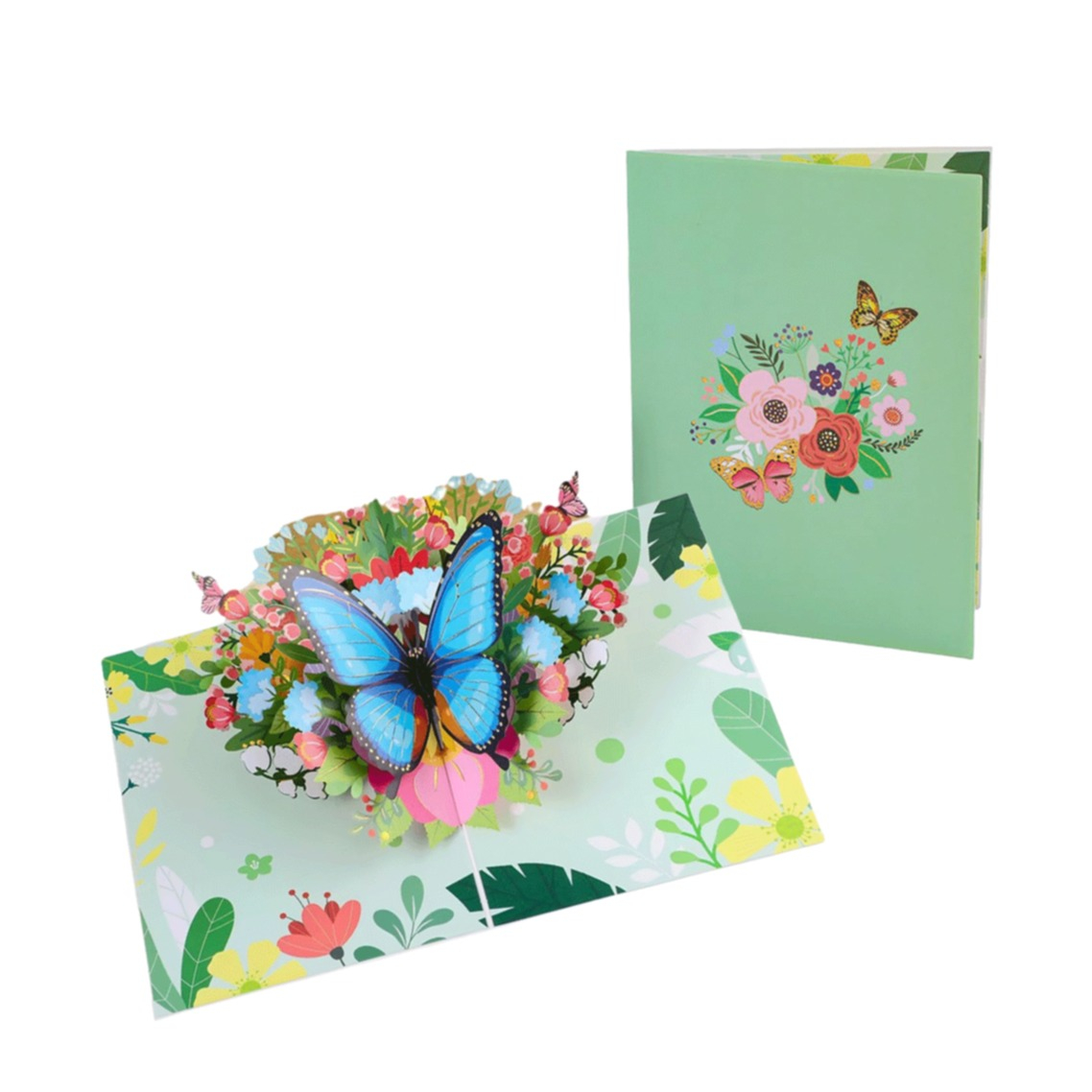 (145x200mm) 3D Carte de voeux Papillon Pop-Up + Enveloppe - Vert
