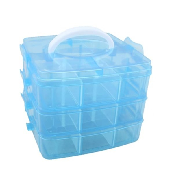 (150x125mm) Boîte de rangement 18 compartiments pour bijoux / mercerie / bureau + accessoires de bricolage - Bleu