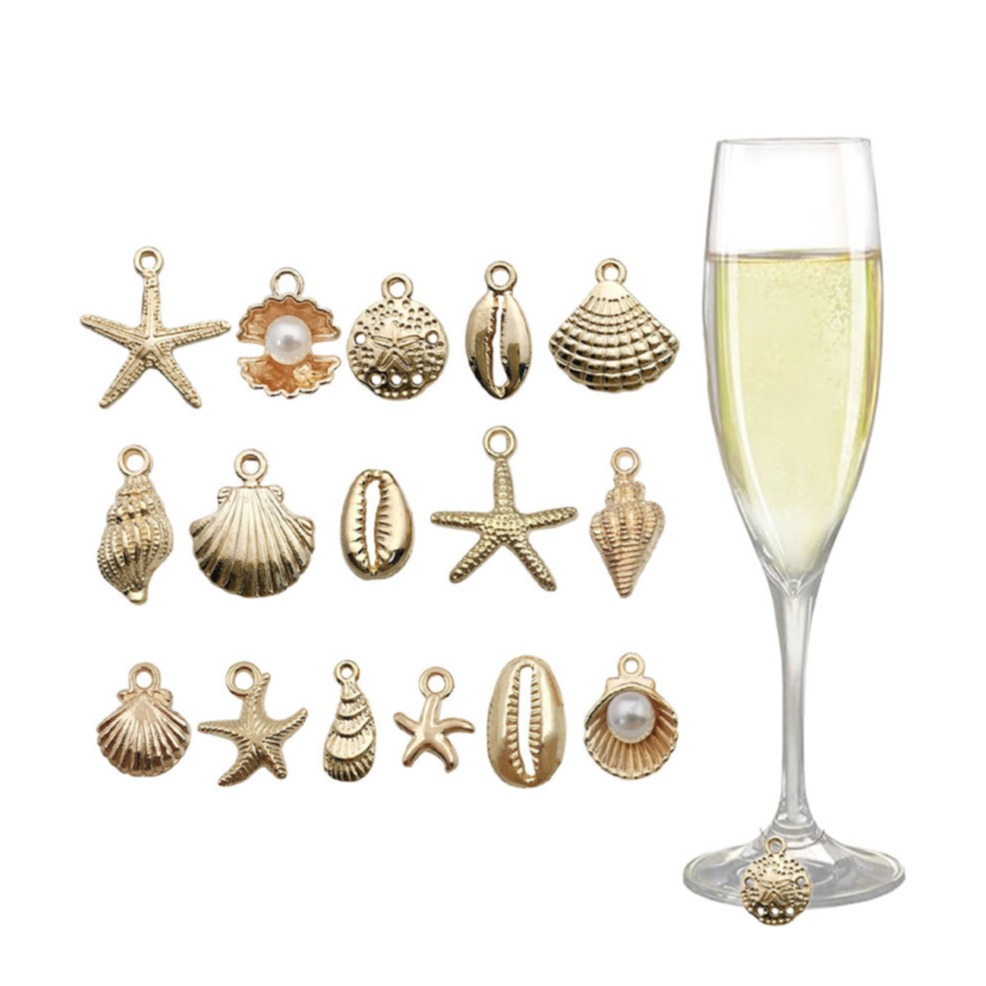 (16 pièces) Marqueurs de verre Réutilisables Verre à boire Coquille Charms Marqueurs - Or