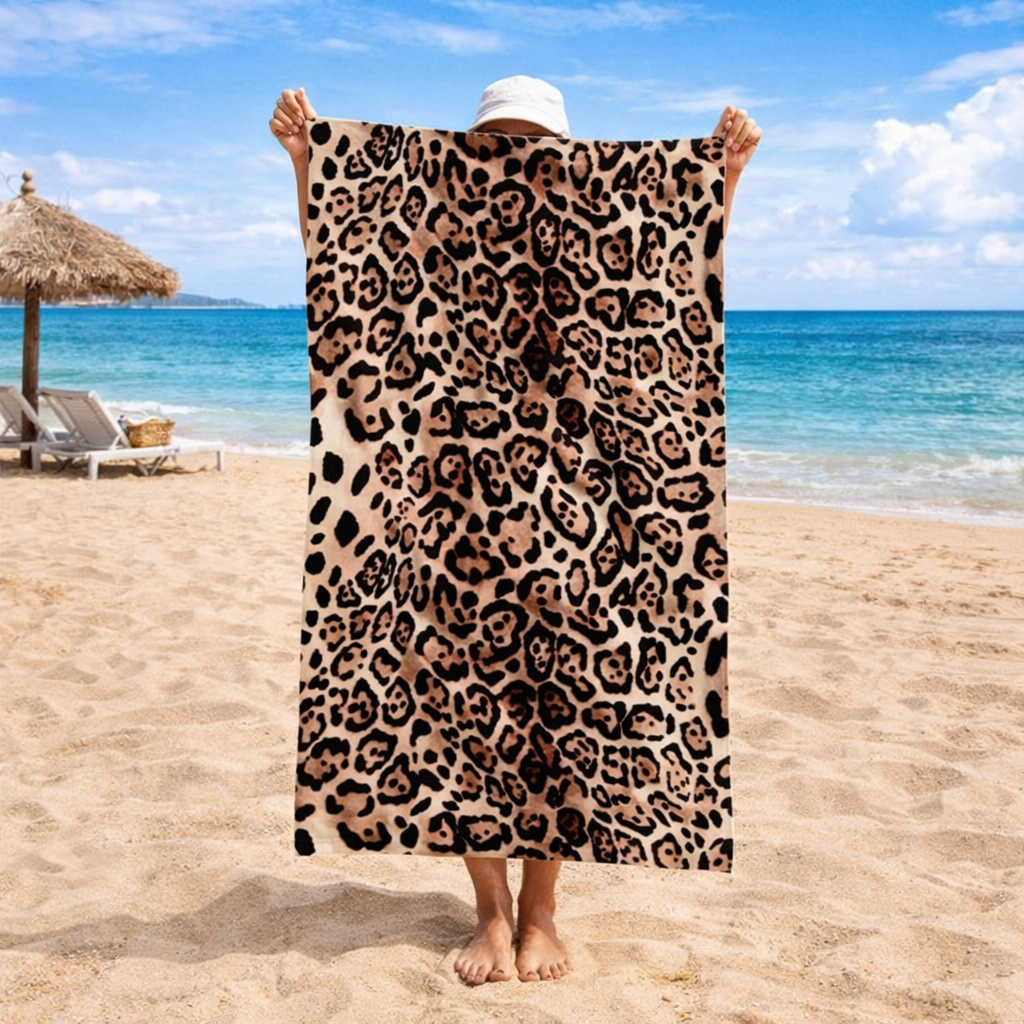 (162x82cm) Serviette de bain microfibre Serviette de plage à séchage rapide - Léopard