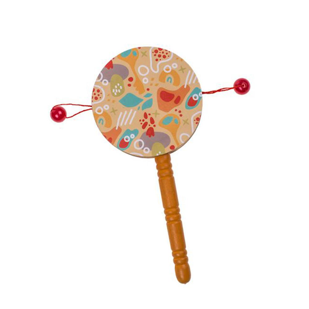 (16cm) Tambour en bois pour enfants Accessoires de musique de carnaval Rythme tambour à crécelle - Coloré
