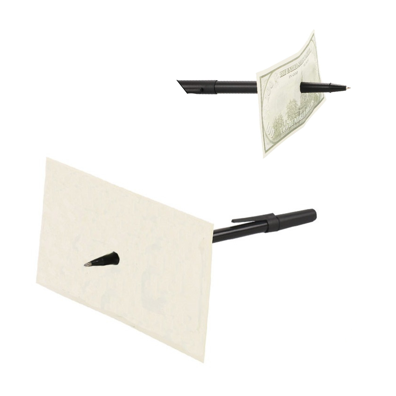 Ce stylo magique **produit une illusion d'optique impressionnante et est la illusion parfaite pour les spectacles, les fêtes et comme jouet entre deux - en effet, le stylo dispose de deux extrémités ! L'une d'elles est fixée par un petit aimant et peut être facilement retirée et remise en place. Tu peux par exemple placer un morceau de papier entre les deux et faire croire à ton interlocuteur que tu as percé le papier sans laisser de trou !