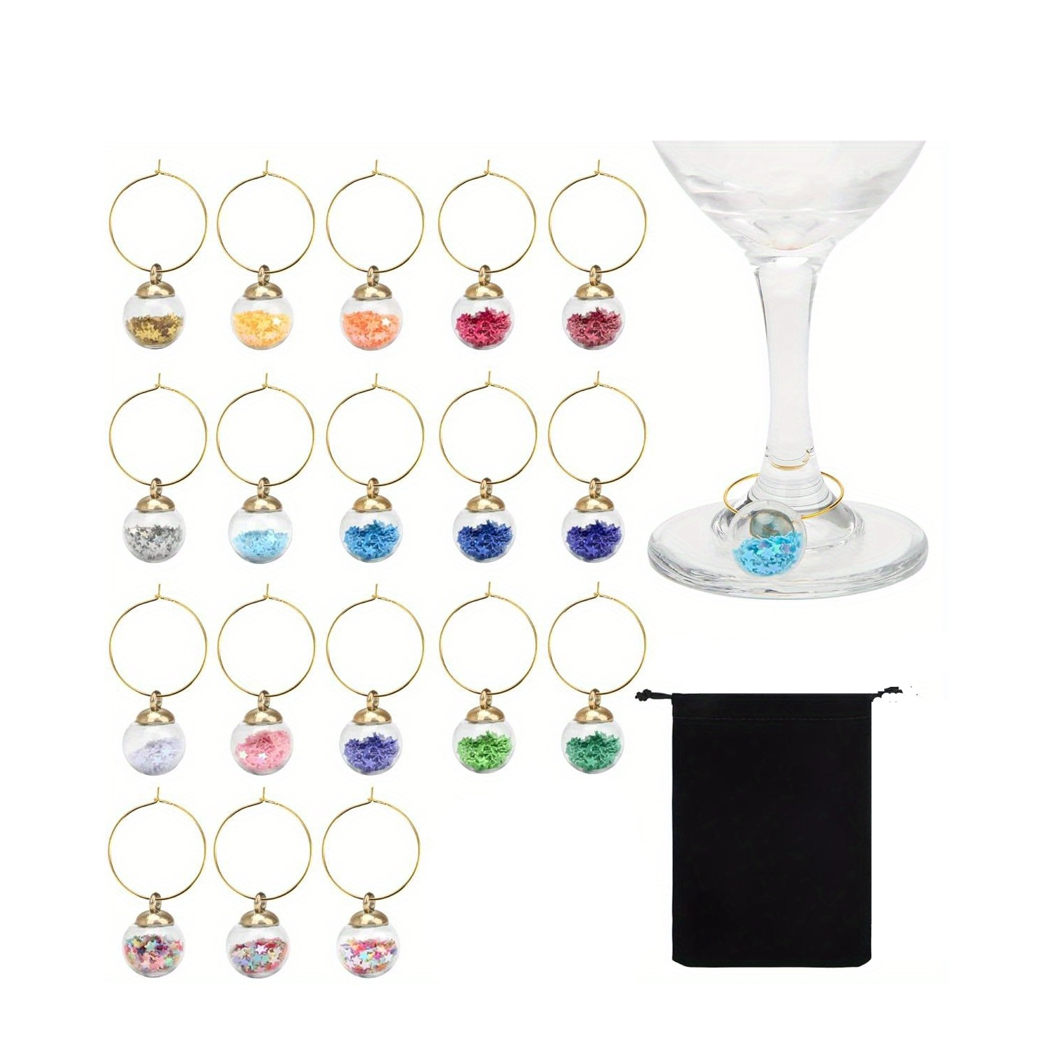 (18 pièces) Marqueurs en verre Verre à boire réutilisable Boule en verre Charms Marqueurs Pendentifs avec sac de rangement - Multicolore