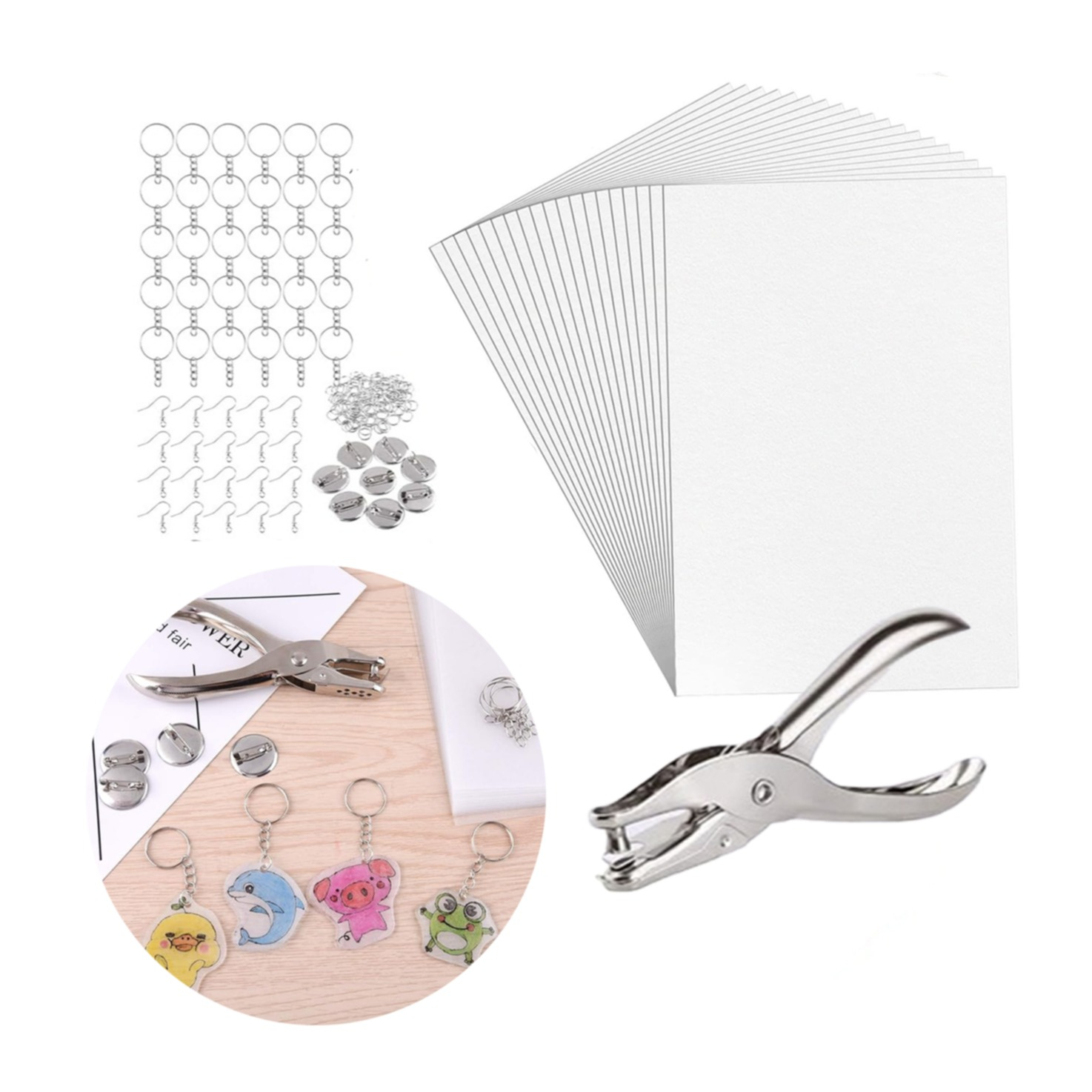 (181 pcs. set) Film thermorétractable A5 DIY kit de bricolage y compris anneau fendu / broches / perforateur / crochet d'oreille - argent / transparent