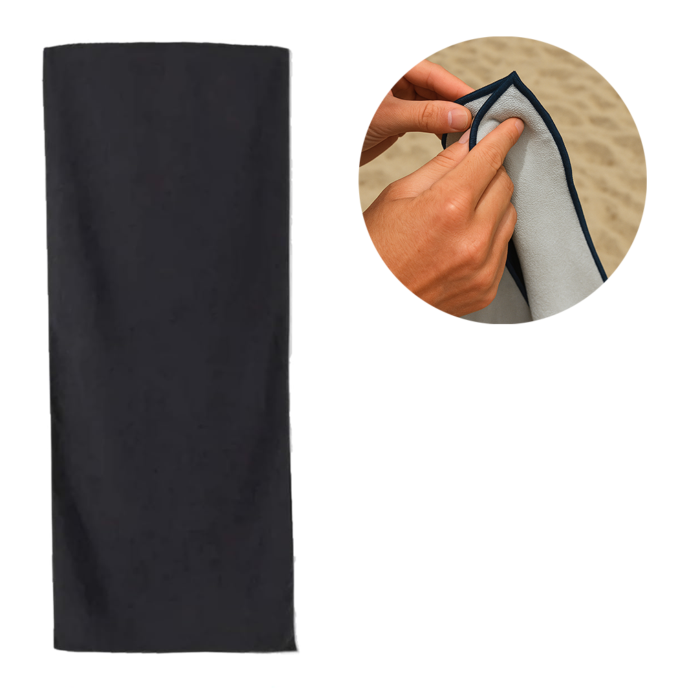 (190x75cm) Serviette de bain microfibre Serviette de plage séchage rapide Outdoor avec coins magnétiques - Noir