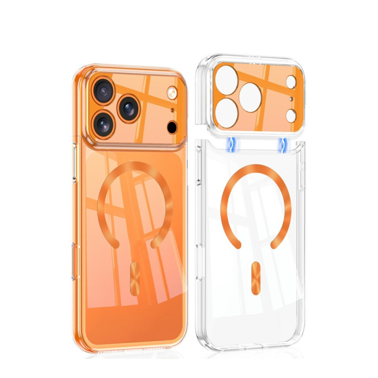 (2 pièces) iPhone 17 Pro Étui rigide magnétique MagSafe avec protection de l'objectif de l'appareil photo - Orange / Transparent