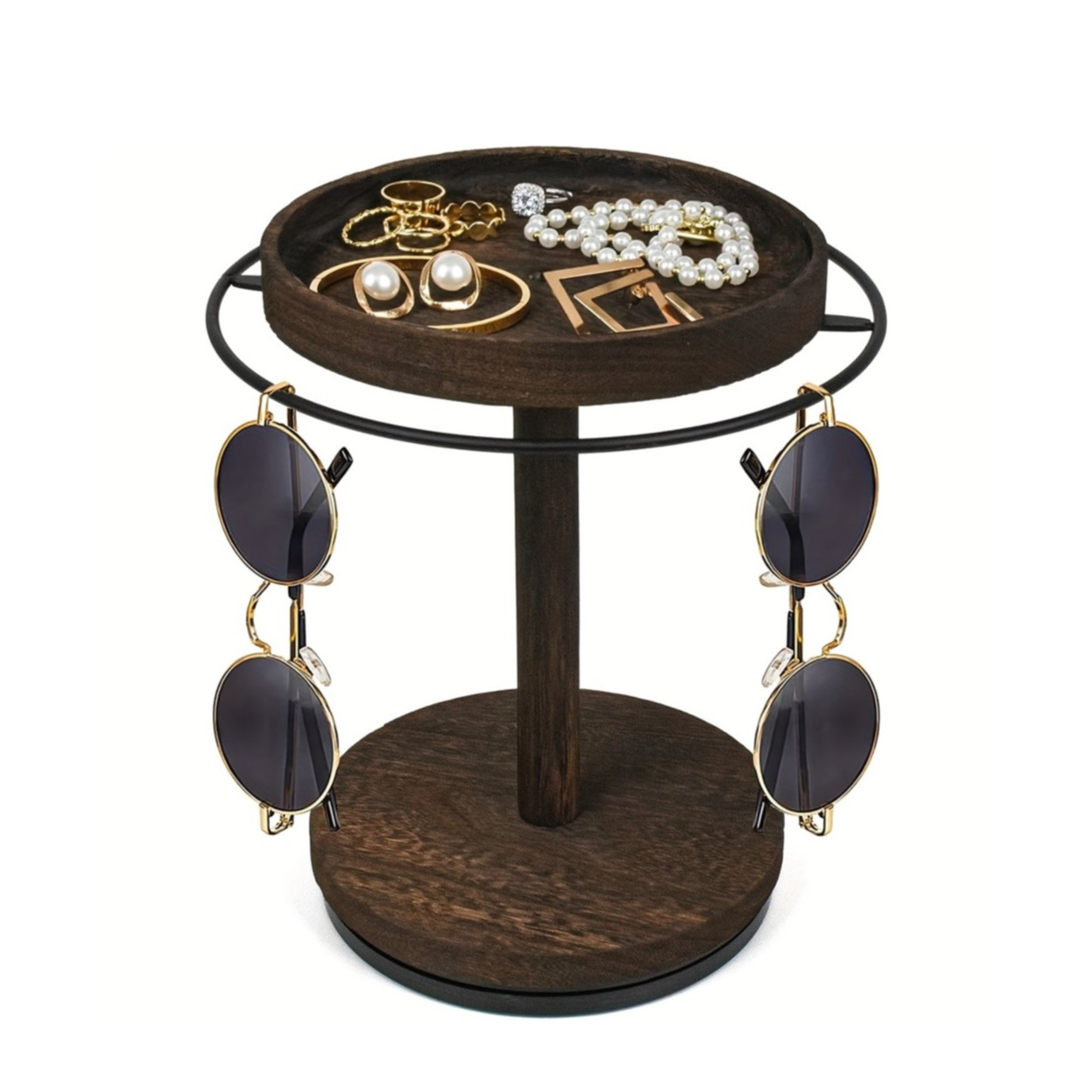 (24x15cm) Support en bois pour lunettes de soleil Porte-accessoires Organisateur de bijoux - Noir