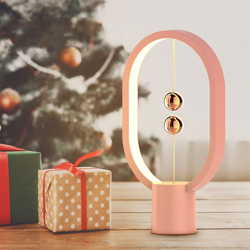 (25x14cm) Lampe de chevet LED Balance USB Décoration maison Eclairage Ellipse magnétique - Rose