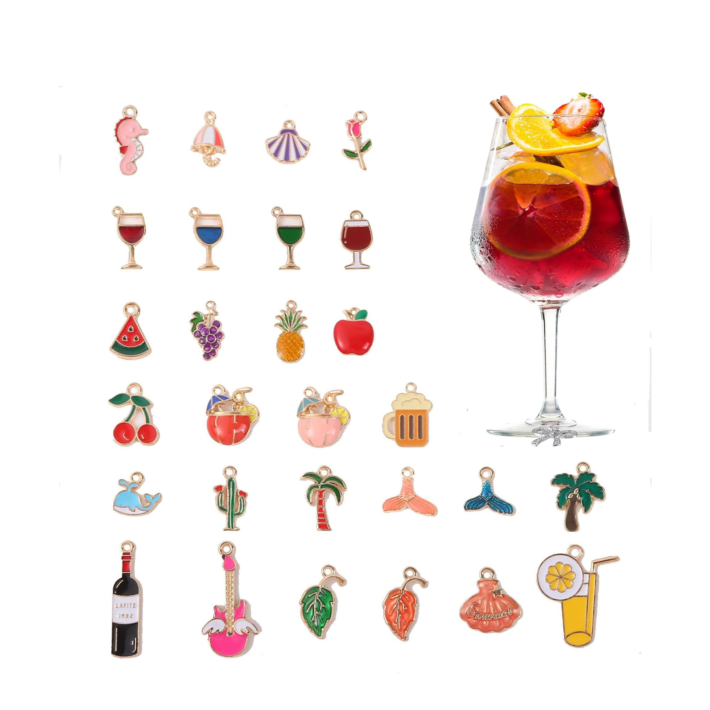 (30 pièces) Marqueurs en verre Verre à boire réutilisable Charms d'été Pendentif marqueur avec sac de rangement - Coloré