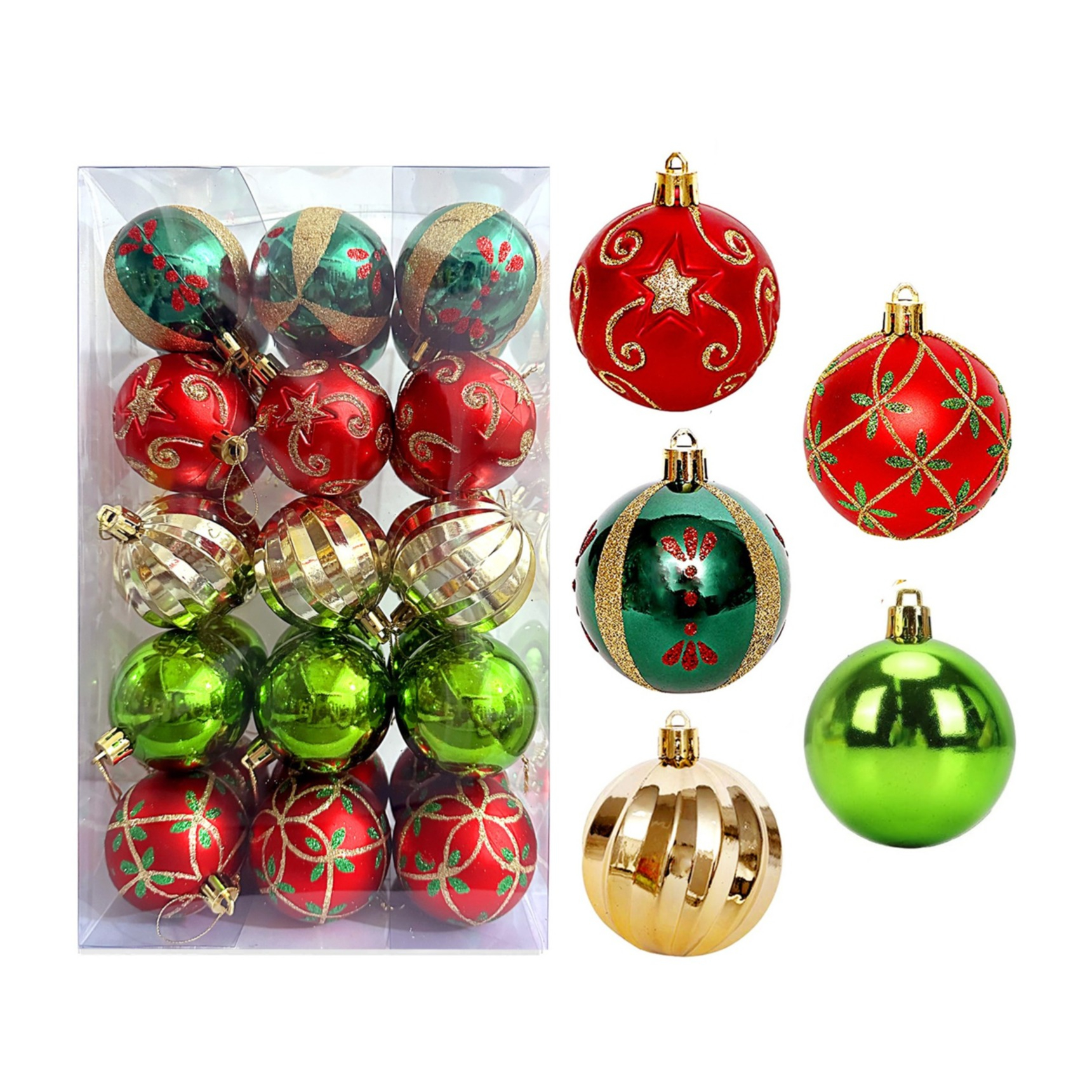 (30 pièces) Ø6cm décoration de l'arbre de Noël scintillant boules de Noël sapin de suspension Home Deko - rouge / vert / or