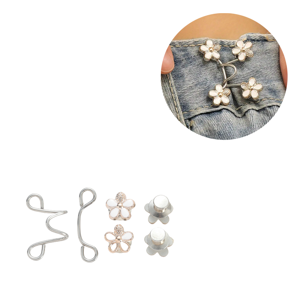 Notre boucle de taille pratique t'offre l'alternative parfaite ! Ce bouton-pression peut être fixé partout sur ta ceinture de pantalon et la resserrer à la taille. La légèreté du bouton et son élégant design fleuri font de ce bouton un accessoire discret pour tous les vêtements qui ont besoin d'être resserrés rapidement. Utilise-le sur des jeans, des jupes ou des robes et personnalise-les à ton goût.