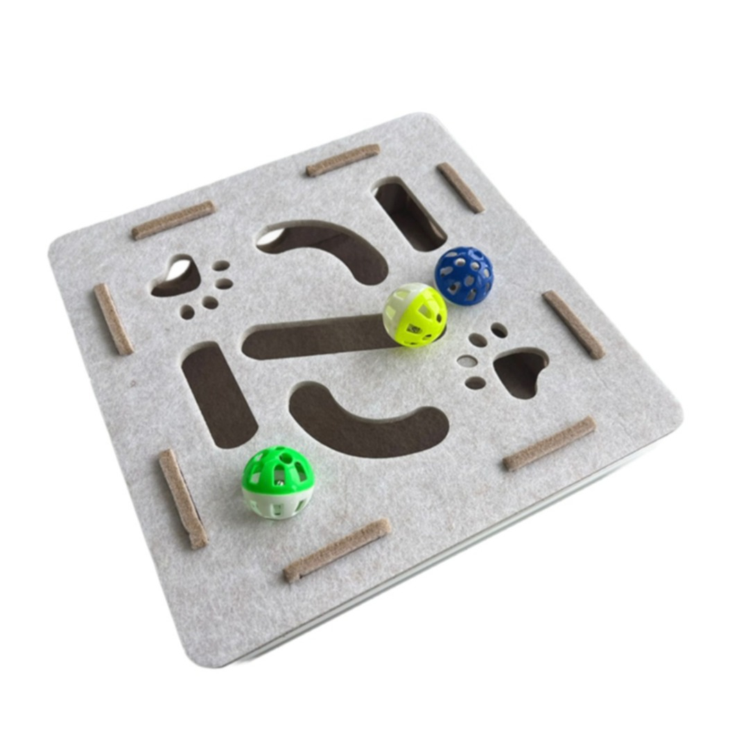 (30x30cm) Jouet Interactif Chat Boule Labyrinthe Feutre Jeu Puzzle incl. balles avec clochettes - Beige
