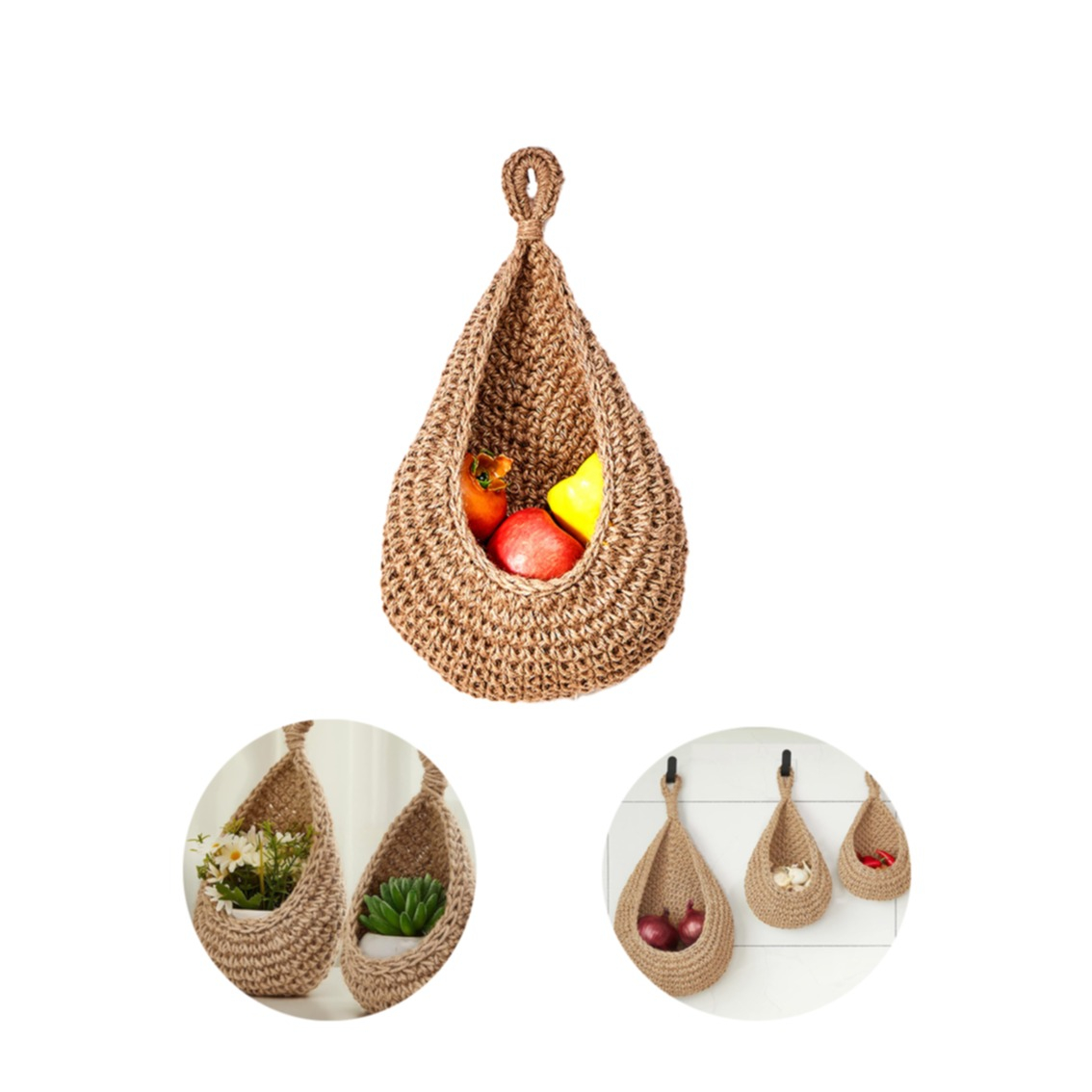 (31x23cm) Panier mural suspendu en jute Décoration maison Organisateur pour fruits / légumes / plantes - Marron