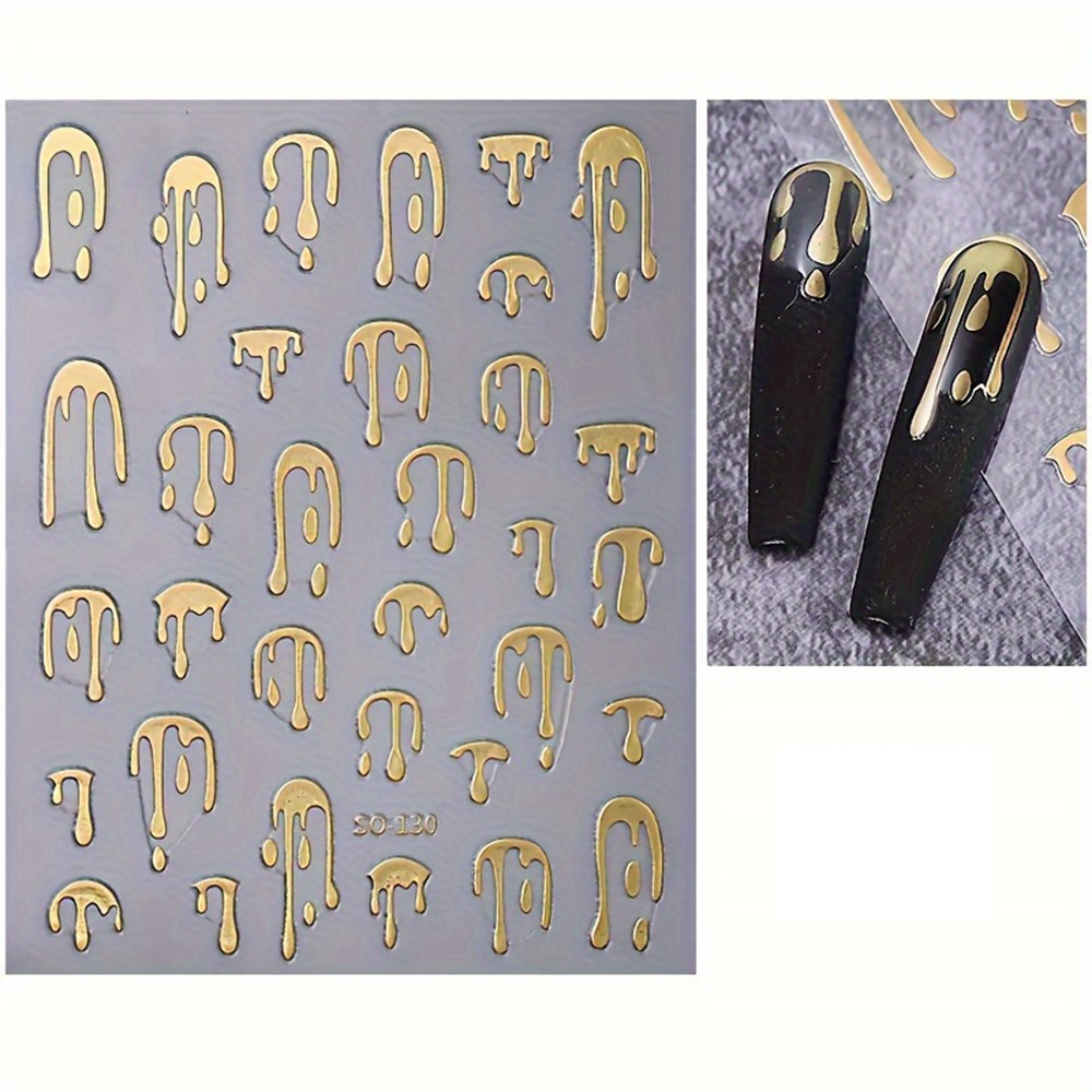 (32-pièces ensemble) 3D ongles autocollant Nail Art tatouage autocollant goutte - or