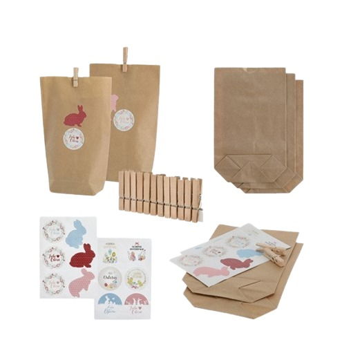 (36 pcs. set) 22x14cm Sacs en papier de Pâques DIY Candy Gift Bag nid de Pâques incl. autocollants + agrafes - Marron