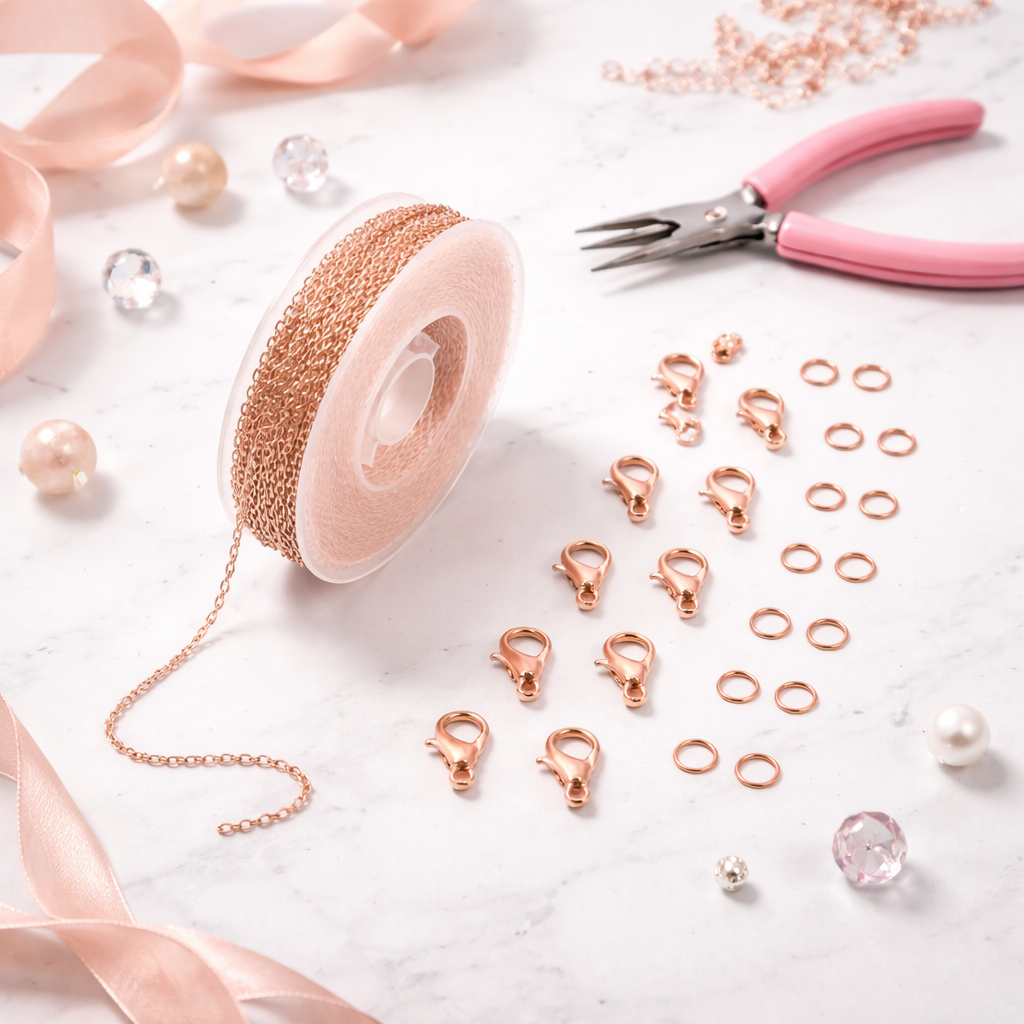 (3m) chaîne en alliage de fabrication de bijoux DIY Kit collier avec fermoirs + anneaux de flexion - or rose