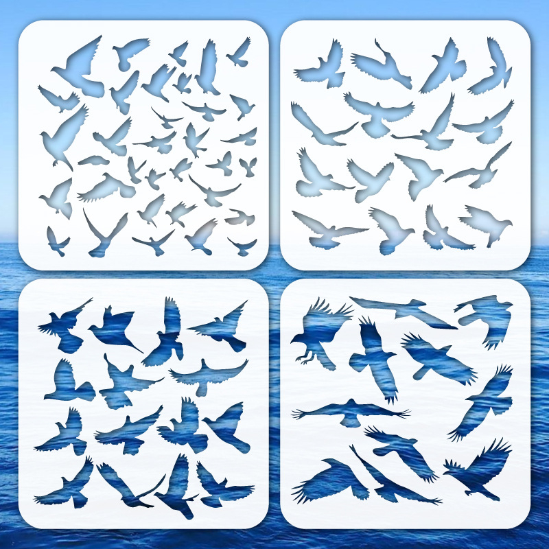 (4 pièces) 15x15cm Pochoirs à dessin Réutilisables DIY Modèles à peindre - Oiseaux