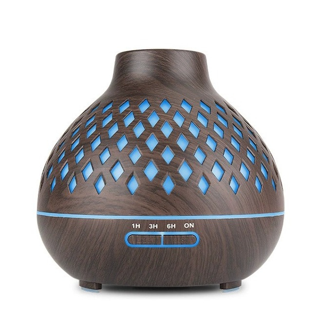 (400ml) 155x160mm Humidificateur d'air à ultrasons Diffuseur d'huile aromatique + télécommande en bois avec éclairage LED - Marron foncé