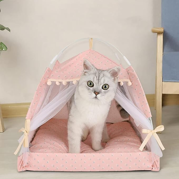 (40x40cm) Tente pour animaux de compagnie Lit pour chats Intérieur Caverne pour chiens avec coussin + fenêtre - Rose