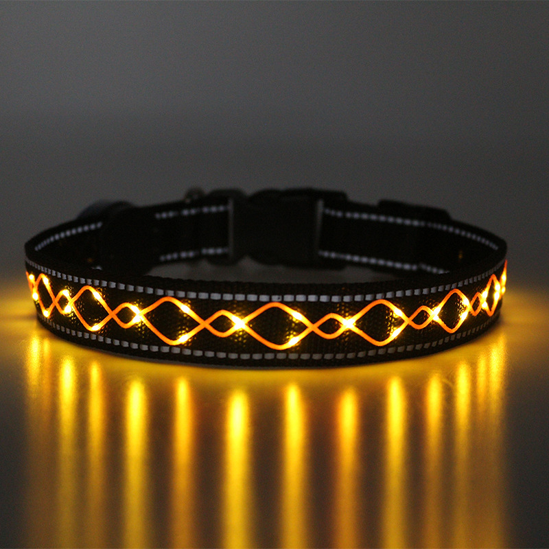 (43-69cm) Nylon Collier lumineux USB pour chien Eclairage de sécurité LED réglable pour animaux domestiques - Noir / Jaune