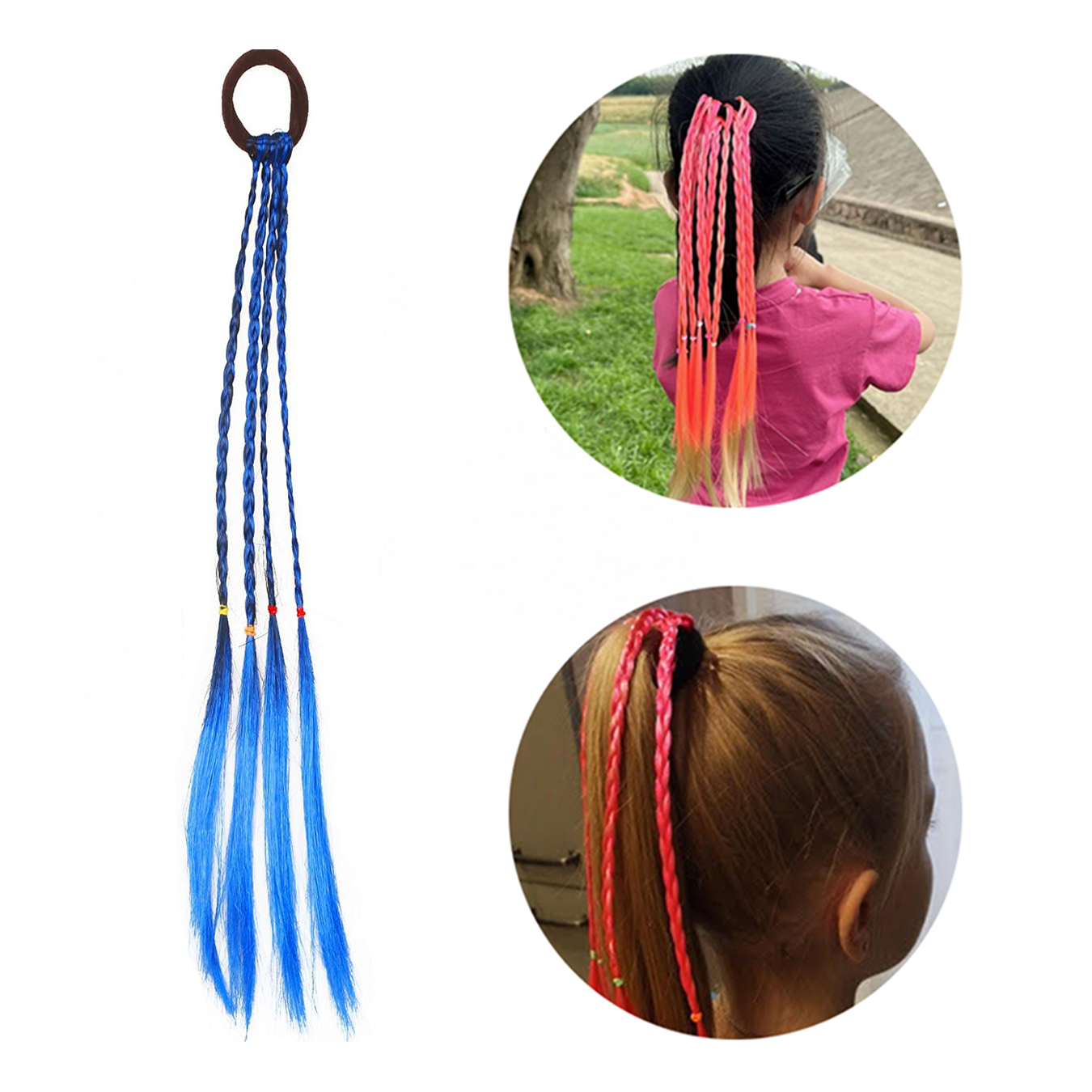 (45cm) Cheveux artificiels Enfants Extensions Bijoux Multicolore Mèche de cheveux Tresse élastique - Bleu