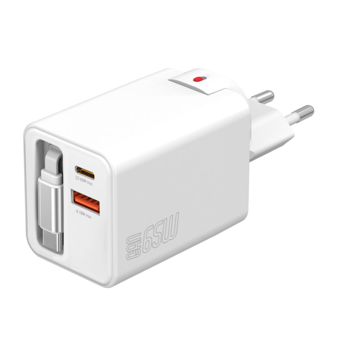 (65W) Flex Jojo USB C / USB A GaN Chargeur Power Delivery Alimentation incl. câble de charge USB C + adaptateur US Worldwide (4S541065) - Blanc