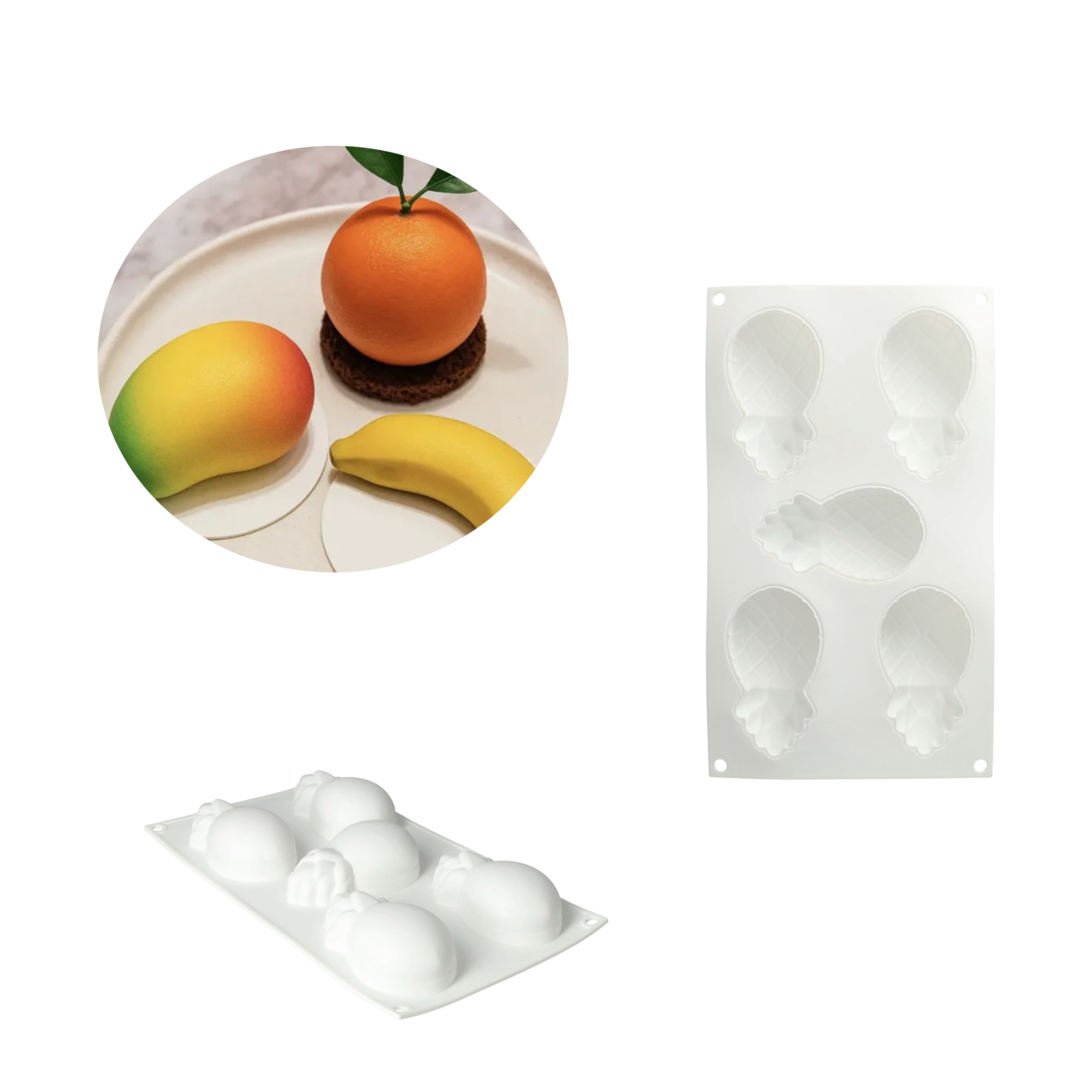 (5 fois) Silicone Tendance Fruits Moule à gâteaux DIY Moule pour desserts aux fruits viraux - Ananas