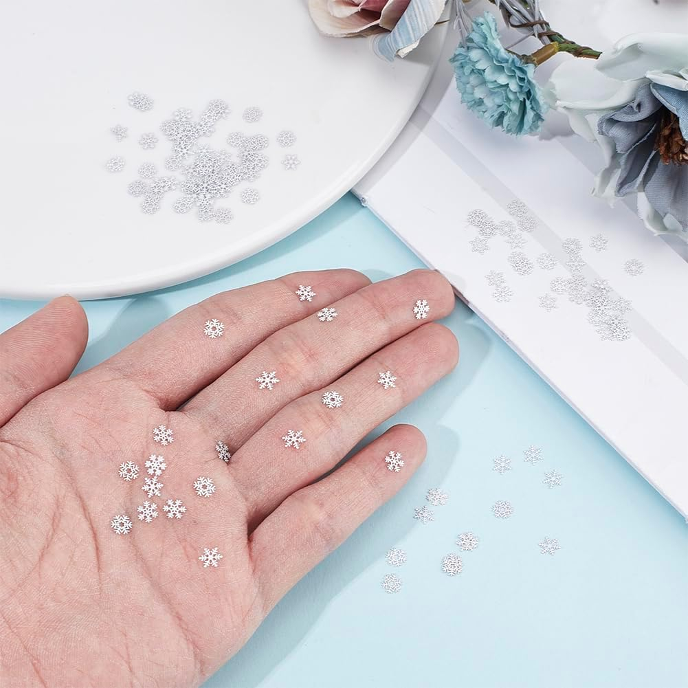 (50 pièces) Ø5mm Décoration de Noël miniature Mini flocons de neige PARTY Décoration de table Accessoires de bricolage pour projets créatifs DIY - Blanc