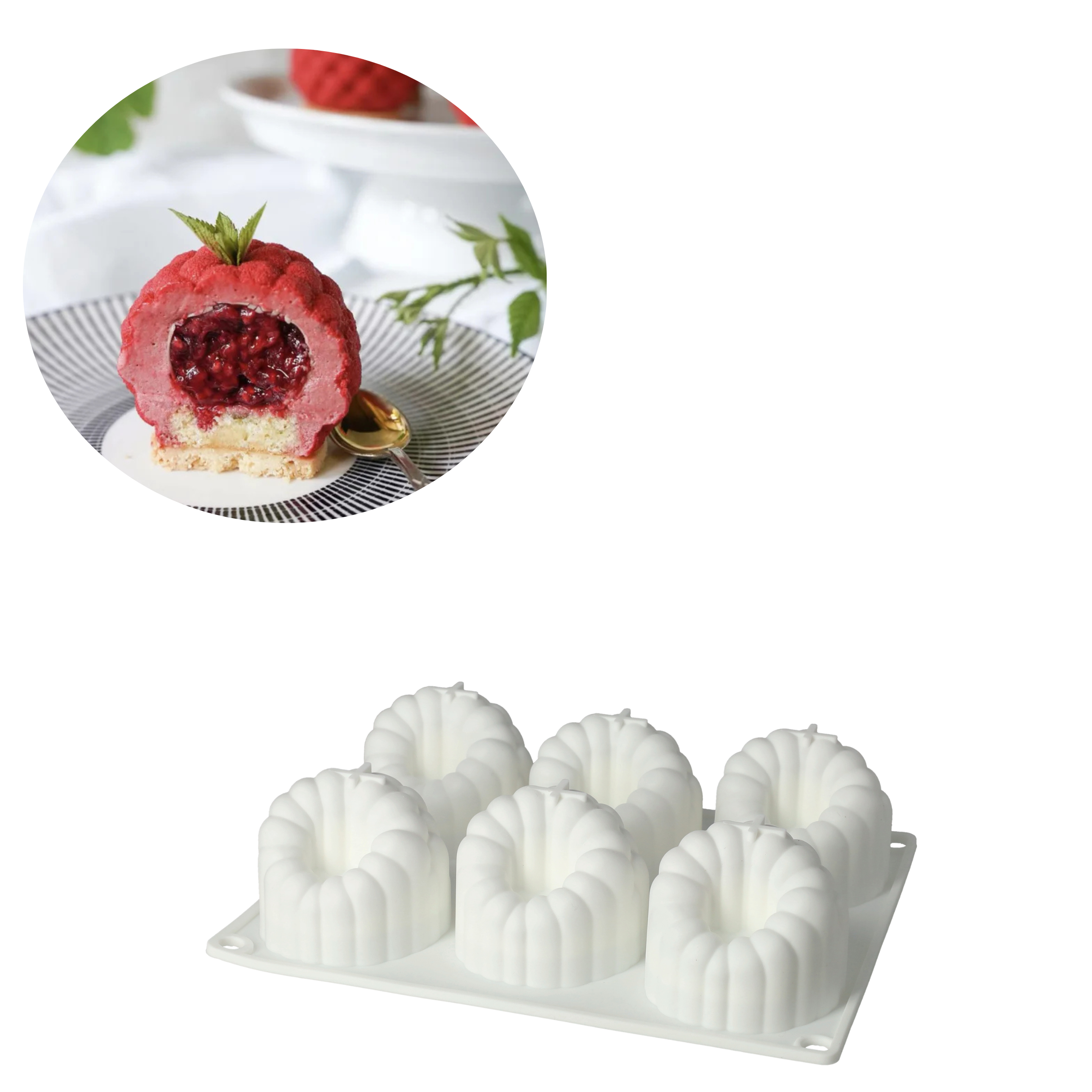 (6 pièces) Silicone Tendance Fruits Moule à gâteaux DIY Moule pour desserts aux fruits viraux - Framboise