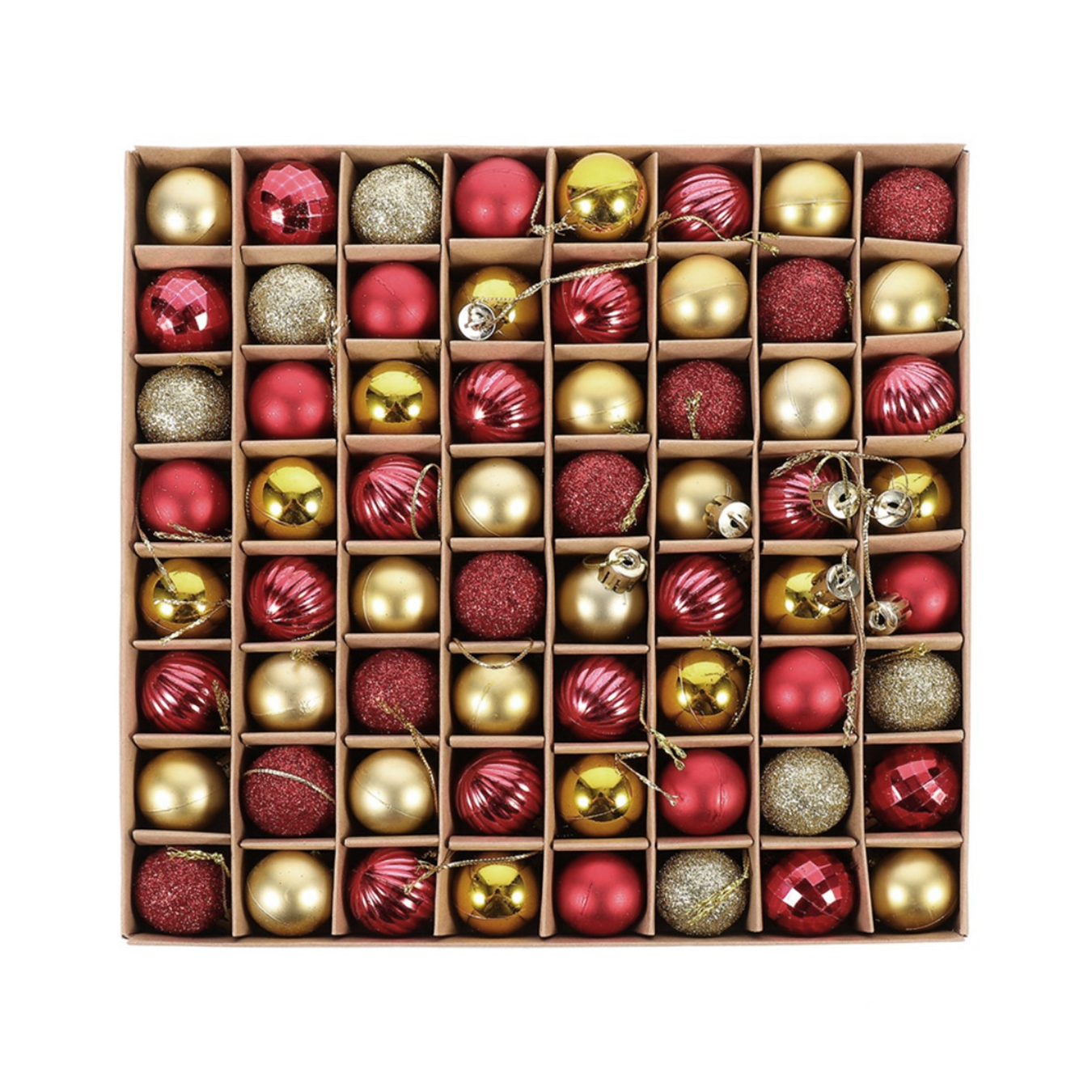 (64 pièces) Ø30mm ornements de Noël boules de Noël - rouge / or