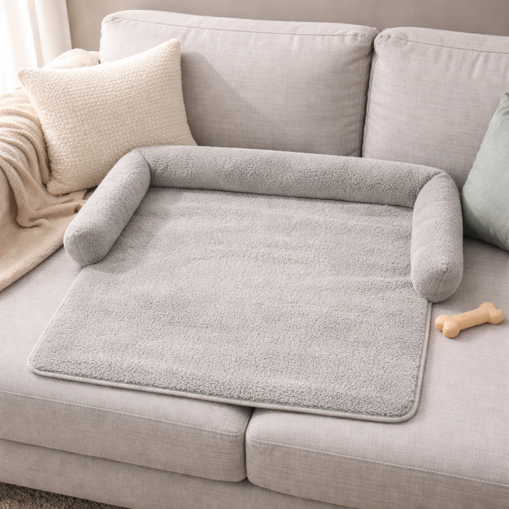 (75x75cm) Lit confortable pour animaux de compagnie en peluche anti-dérapant Couverture de protection de canapé pour petits chiens / chats - Gris