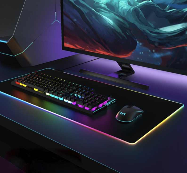 (80x30cm) Tapis de souris de jeu avec dessous antidérapant + éclairage RGB - Noir