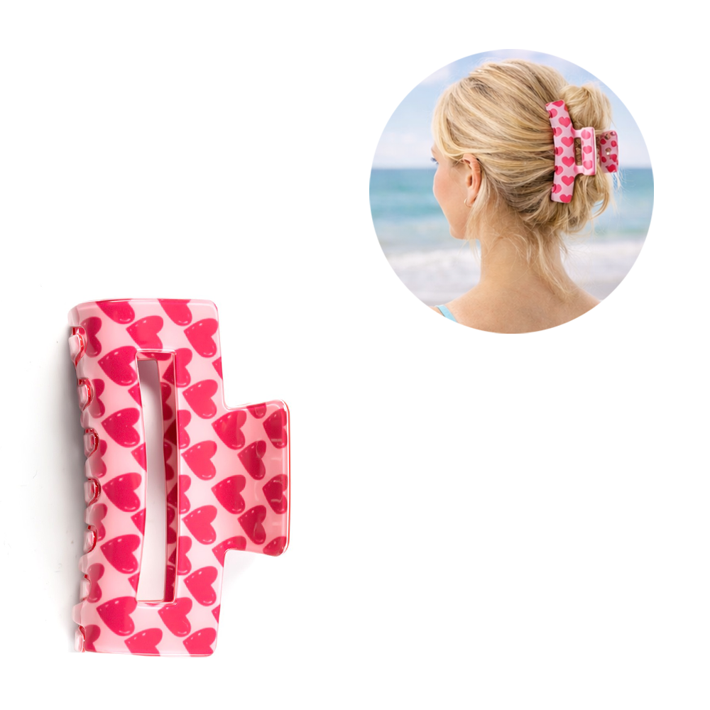 Cette pince à cheveux décorative donne à tes cheveux un accent frais et romantique. La pince pratique s'insère facilement et est idéale pour les coiffures relevées ou les styles semi-décoiffés. Le design cœur frappant en rouge et rose assure un look affectueux au quotidien ou lors d'occasions particulières. En tant que clip à griffes moderne, elle complète ta coiffure avec un détail tendance.