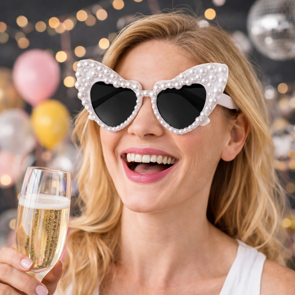 Accessoires photo Coeur Party Lunettes de soleil Perles Photo Accessoire Décoration pour Enterrement de vie de jeune fille / Mariage - Blanc
