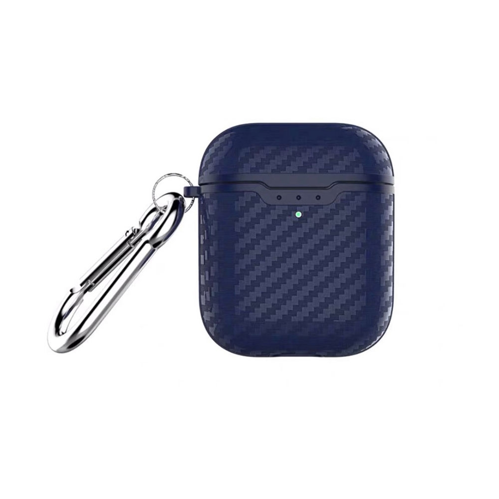 AirPods (1ère & 2ème génération) Housse de protection en caoutchouc avec mousqueton look carbone - bleu foncé