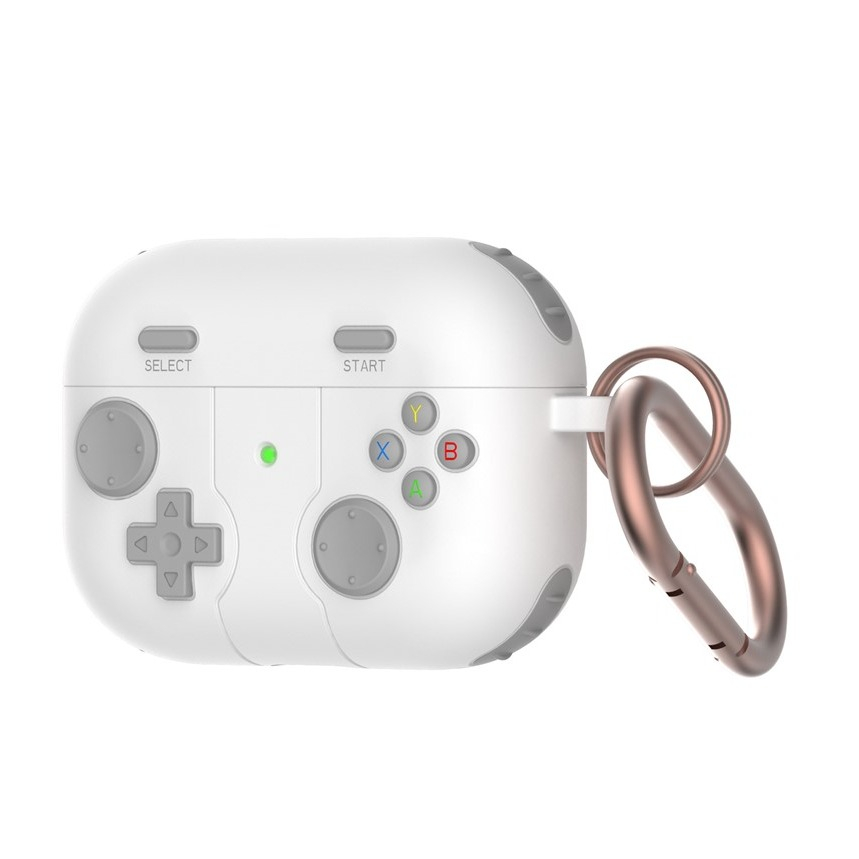 AirPods (3ème génération) Coque de protection en caoutchouc Couverture de console de jeu rétro avec mousqueton - Blanc