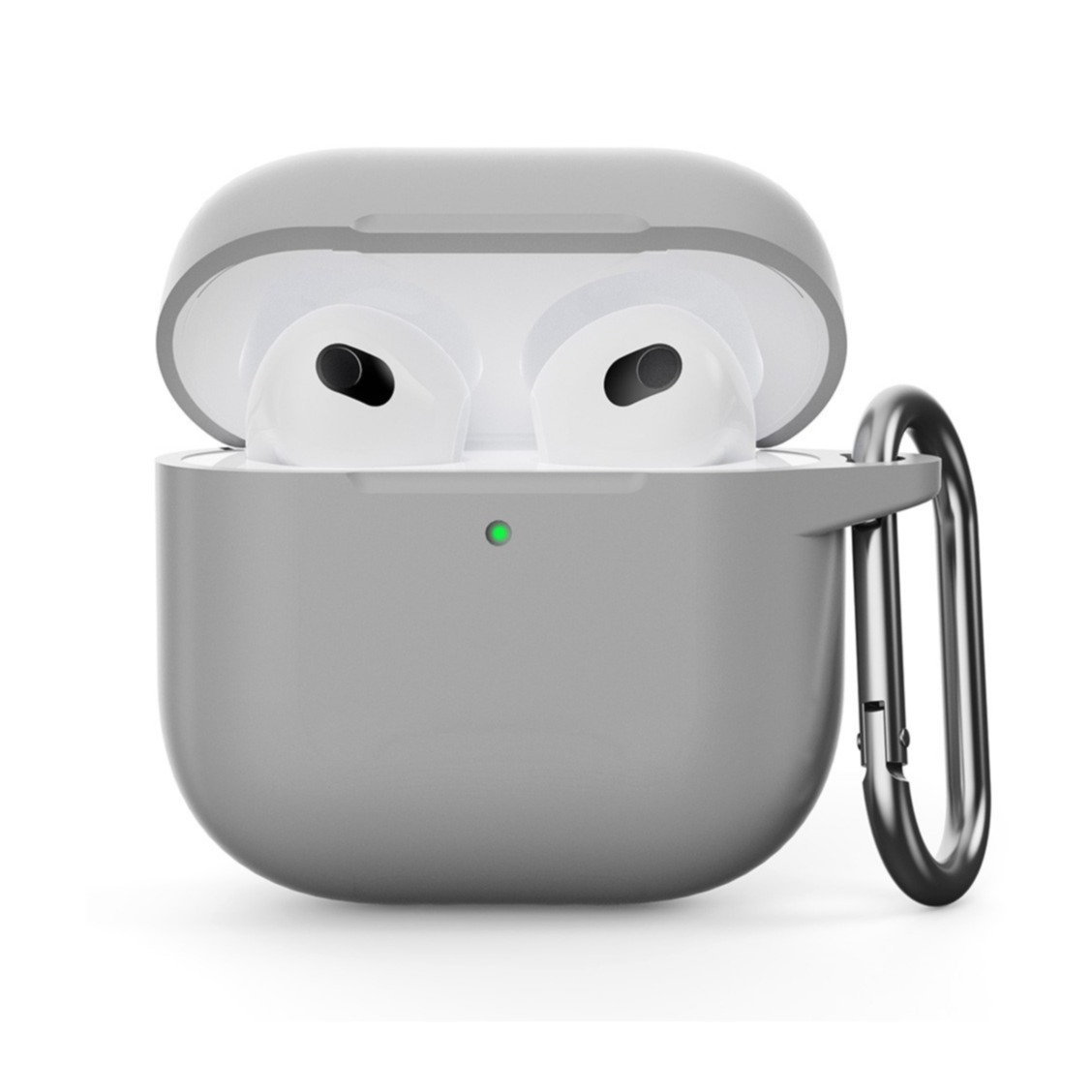 AirPods 4 Housse de protection en silicone avec mousqueton - Gris clair (mat)