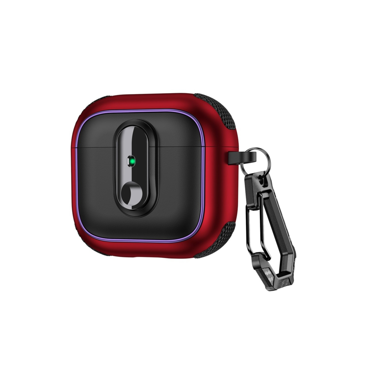 AirPods 4 Housse de protection rigide hybride avec fermeture + mousqueton - Rouge / Noir