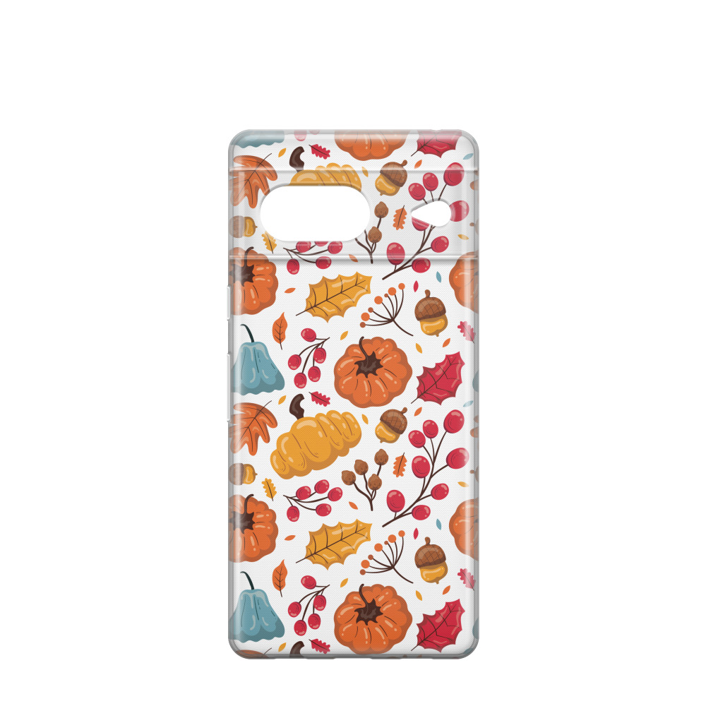 Google Pixel 7 Gummi Hülle Laub und Kürbisse - Orange