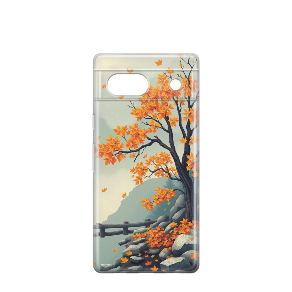 Google Pixel 7a Gummi Hülle Herbstliche Felsen - Orange
