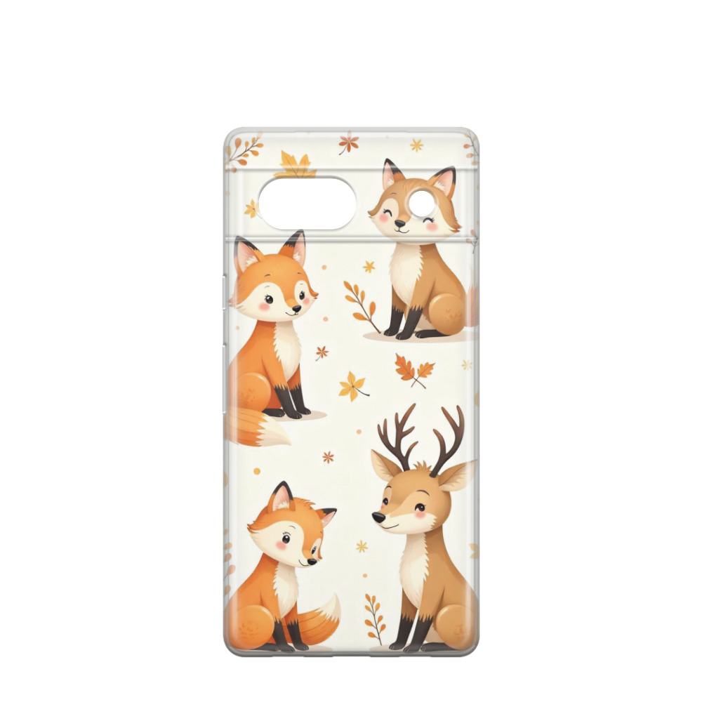 Google Pixel 7a Gummi Hülle Herbstliche Waldbewohner - Orange