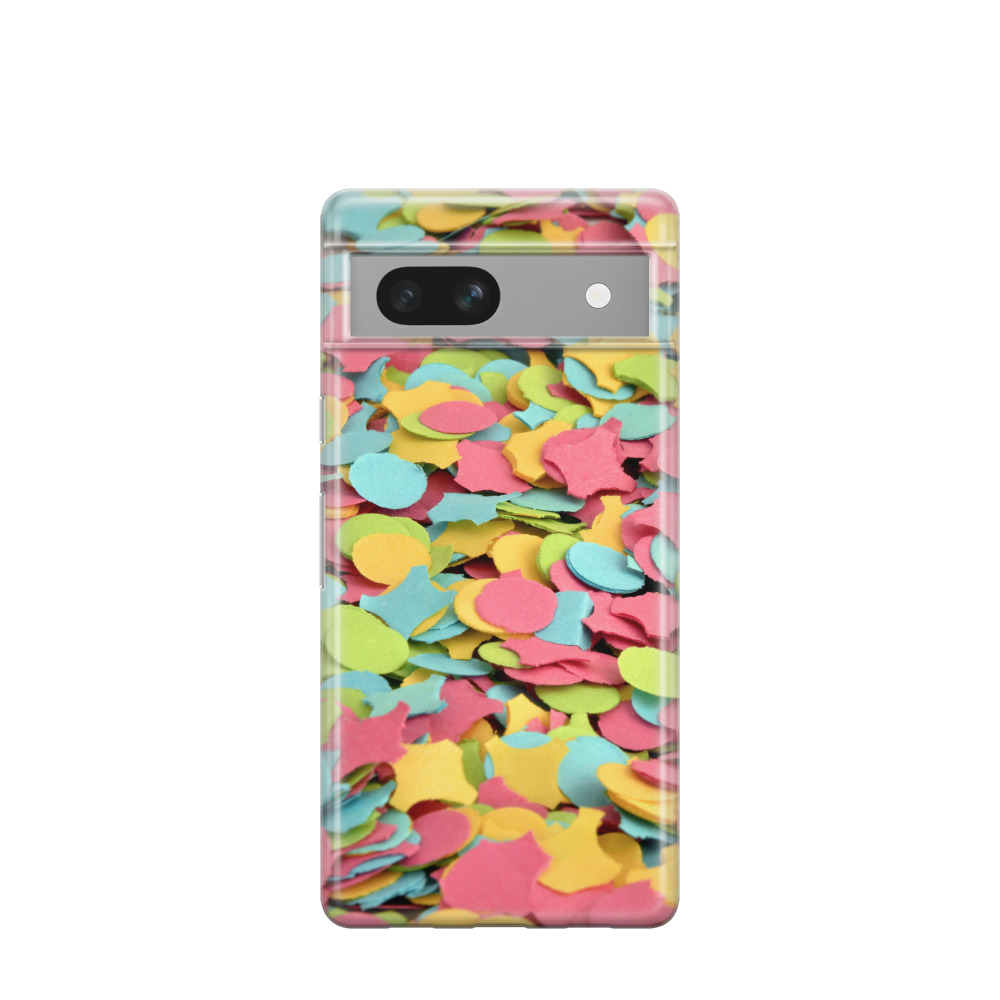 Google Pixel 7a Gummi Hülle Konfettipracht - Blau / Gelb / Rot